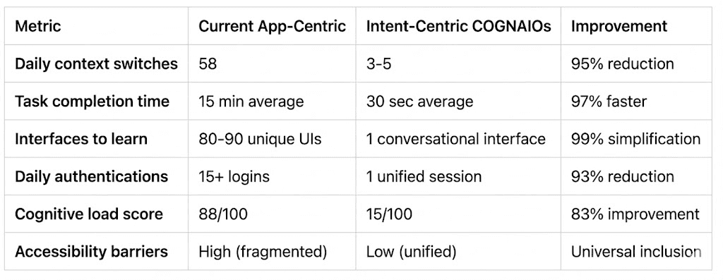 That future is COGNAIOS : a paradigm shift from apps to intent, from fragmentation to unified interaction, from user-managed logistics to intelligent orchestration.